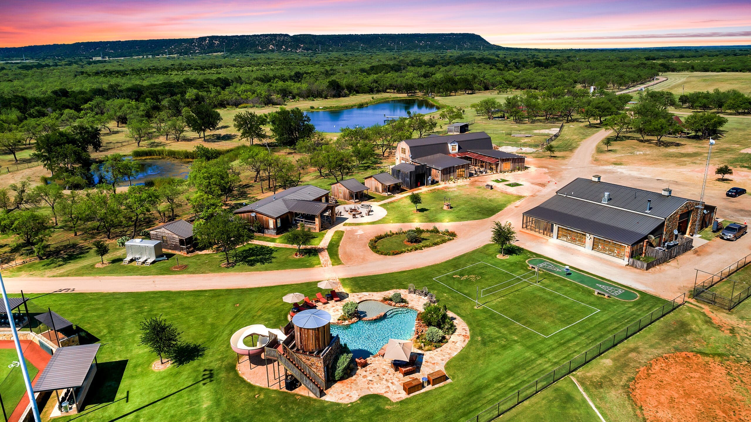 Join us at Rocker B Ranch, a rustic baseball ranch located on 325-acres featuring six fields and resort-style amenities including lodging options, dining experiences, two swimming pools, a fishing pond, and an on-site music venue.